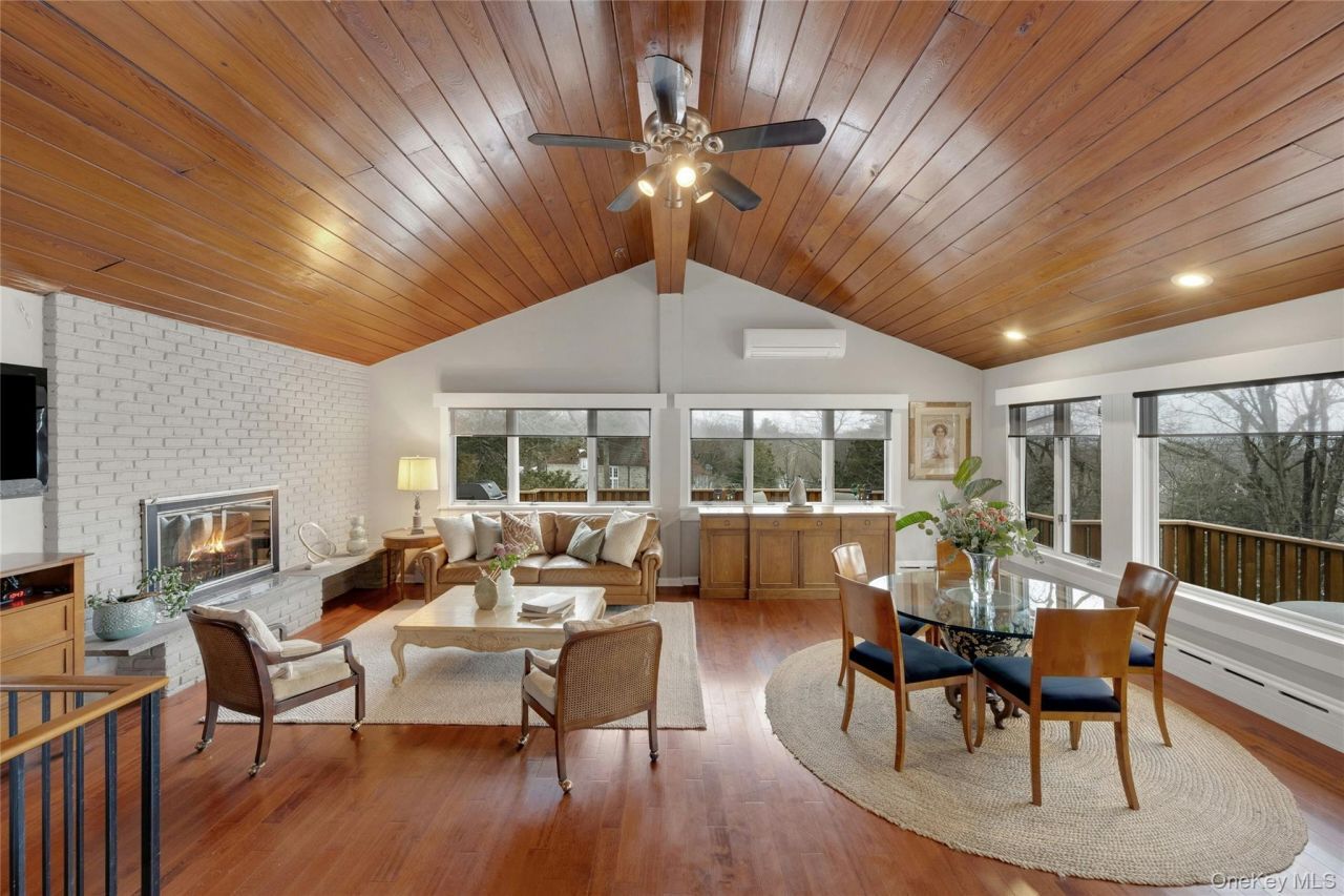 Location, location, location! Architectural charm meets modern comfort in this beautiful Mid-Century Modern ranch, perfectly situated on a premier corner lot in the sought-after Cedar Ridge community of Irvington. Featuring a convenient circular driveway and an additional secondary driveway for easy garage access, this home offers a seamless blend of style and modern flare. This sun-filled home offers vaulted ceilings and an open-concept floor plan which creates a welcoming atmosphere as you step into the main level. This one-floor living is surrounded by all glass windows overlooking Hudson River and defined the spacious living room with fireplace with a seamless transition into the dining area. The sleek, newly remodeled kitchen is outfitted with top-of-the-line stainless steel appliances, breakfast bar seating, and a wine refrigerator, all with direct access to an expansive wrap-around deck. This outdoor oasis overlooks the Hudson River with breathtaking seasonal views and sunsets, providing an exceptional setting for indoor-outdoor entertaining. The main level is completed by two spacious bedrooms with large closets and a full hall bath with tumbled marble shower. A staircase leads to the lower-level retreat, which features an oversized primary suite complemented by a spa-inspired bathroom with a Jacuzzi tub and tiled enclosed shower. This versatile lower level also includes a dedicated home office or den, a laundry room with walk-out access to backyard, and direct entry to the one-car garage and utilities. This home is closely located Irvington High School and Middle School and is just minutes from the village's charming restaurants, historic sites, and Matthiessen & Scenic Hudson Parks to enjoy concerts and town events. Public transportation for an easy commute to New York City. This home is not to be missed!